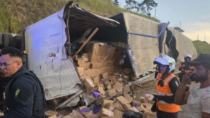 Segundo a Polícia Rodoviária Federal e a concessionária Nova 381, que administra o trecho, a carga, espalhada no chão, foi alvo de saqueadores que passavam pelo local.
