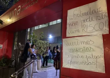 Diversos estudantes do Centro Universitário UNA protestaram na frente da unidade Linha Verde, localizada na Cristiano Machado, na altura do bairro…
