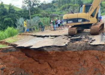 O fluxo de veículos na MG-285, no km 74, em Astolfo Dutra (MG), na Zona da Mata, está interditado na…
