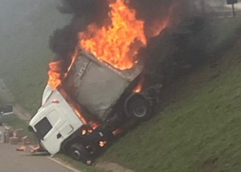 Uma carreta saiu da pista, caiu no canteiro central e pegou fogo na manhã desta quarta-feira (8/4), na BR-381, no…