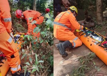Uma mulher ficou ferida após sofrer uma queda de cerca de 10 metros durante uma trilha na Cachoeira da Jangada,…