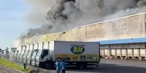 Incêndio atinge galpão dos Supermercados BH e outros centros logísticos no Espírito Santo