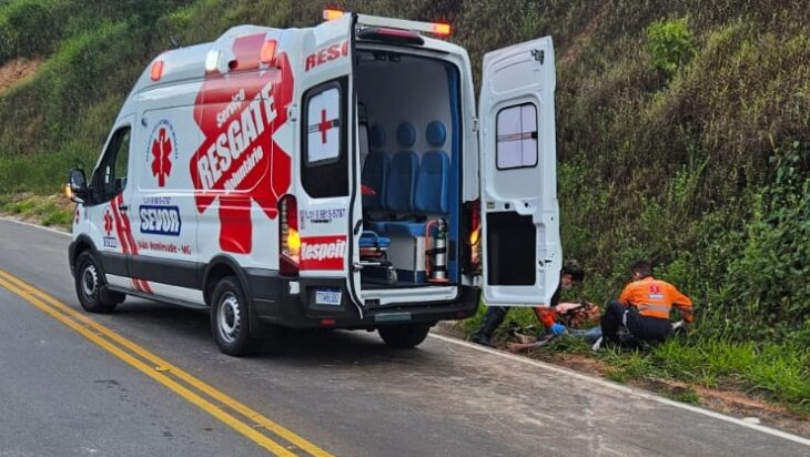 Às 17h23, o Serviço Voluntário de Resgate (Sevor) foi acionado para atender uma vítima de acidente de motocicleta na estrada que liga João Monlevade a São Gonçalo do Rio Abaixo, nas proximidades da comunidade Fernandes (Pacas).
