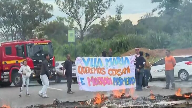 Uma manifestação na manhã desta terça-feira (10/2) bloqueia o trânsito no Anel Rodoviário de Belo Horizonte desde as primeiras horas do dia. O protesto é feito por moradores da Vila Maria na altura do bairro Betânia e do Parque Jacques Cousteau.
