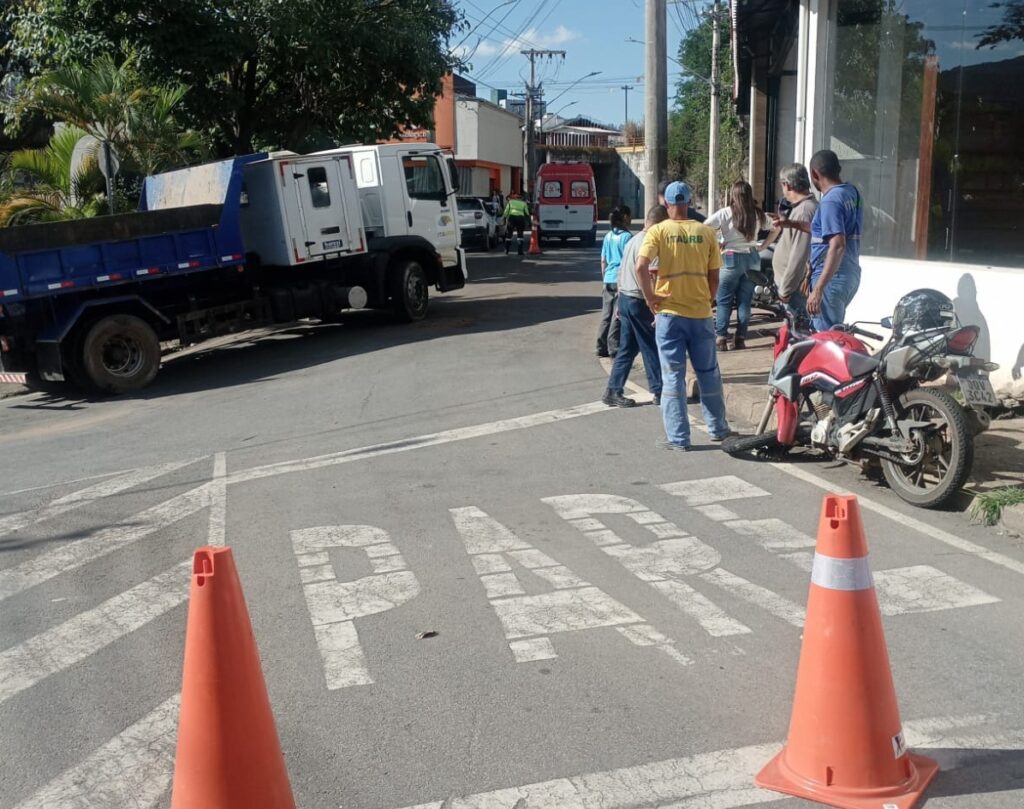 Moto colide com caminhão da Itaurb e condutor fica ferido em Itabira