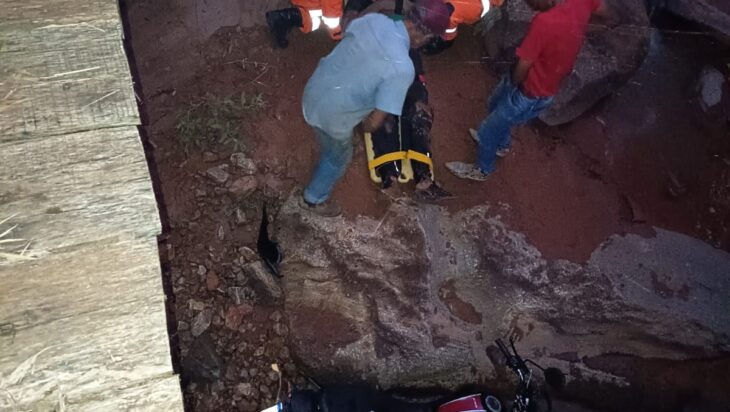 Foram empenhadas equipes de resgate que seguiram rapidamente para o local. Ao chegarem, os militares encontraram a vítima, um homem, caída ao lado de um córrego, enquanto a motocicleta estava dentro da água.