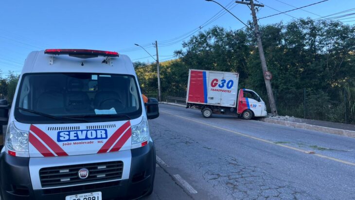 Motorista perde controle ao tentar desviar de cachorro e bate em poste, em João Monlevade